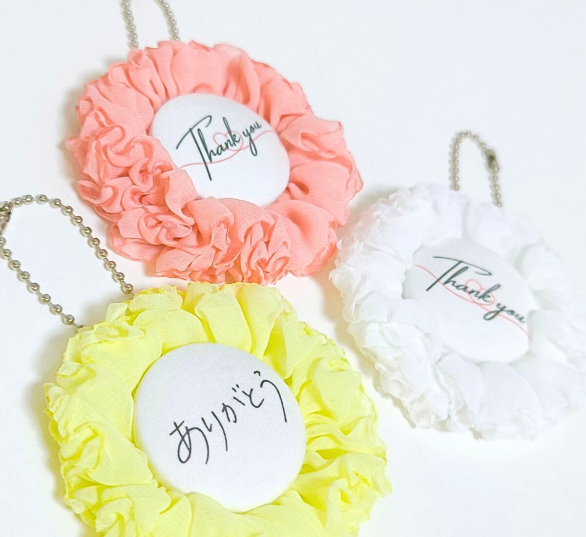 ありがとうの気持ちを込めたThank you ロゼットキーホルダー シフォンフリル