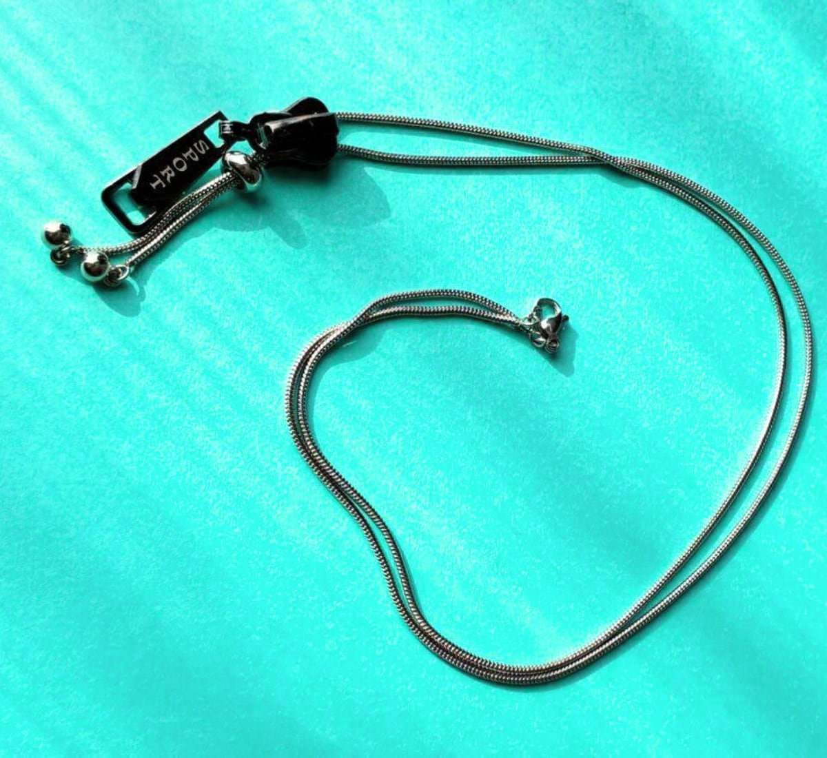 スライダー式 メタルジッパーロングネックレス スネークチェーン