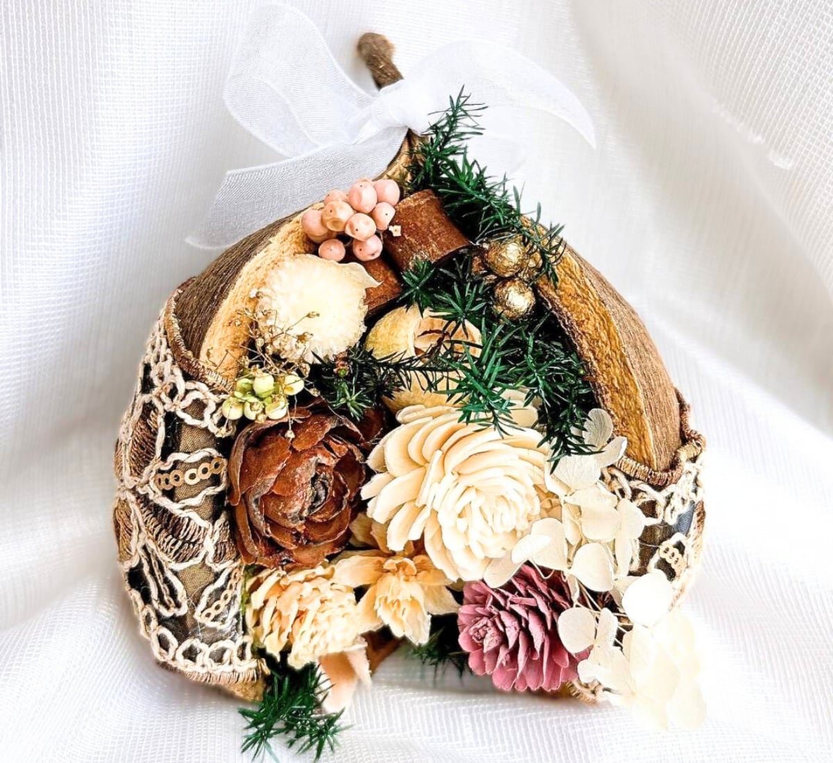 ブッダナッツのフラワーアレンジ アンティーク クリスマスインテリア