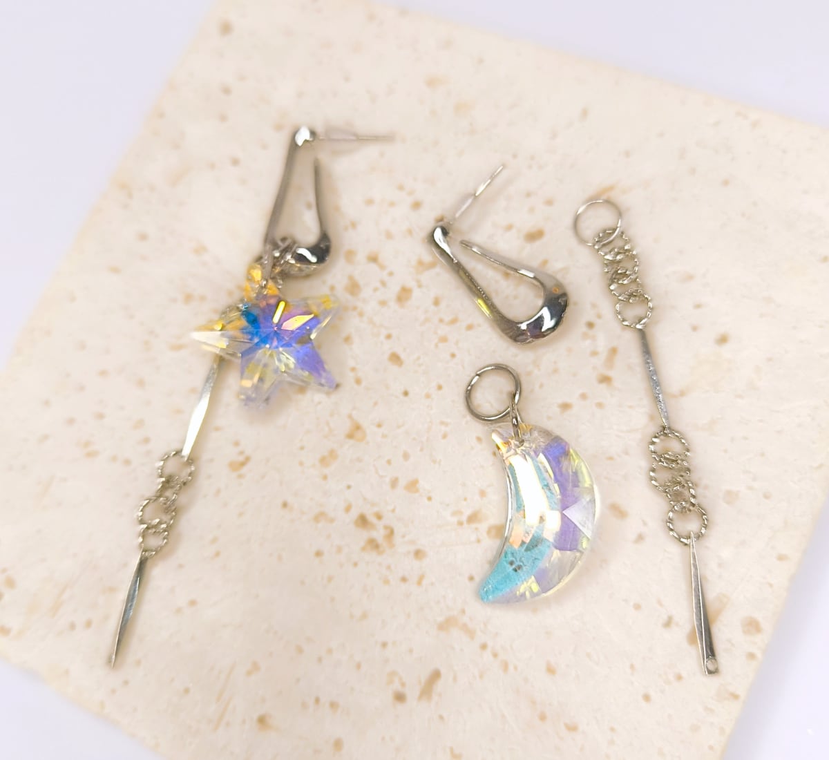 K9ガラスの星と月 アシメ×3wayピアス[MHN-341]