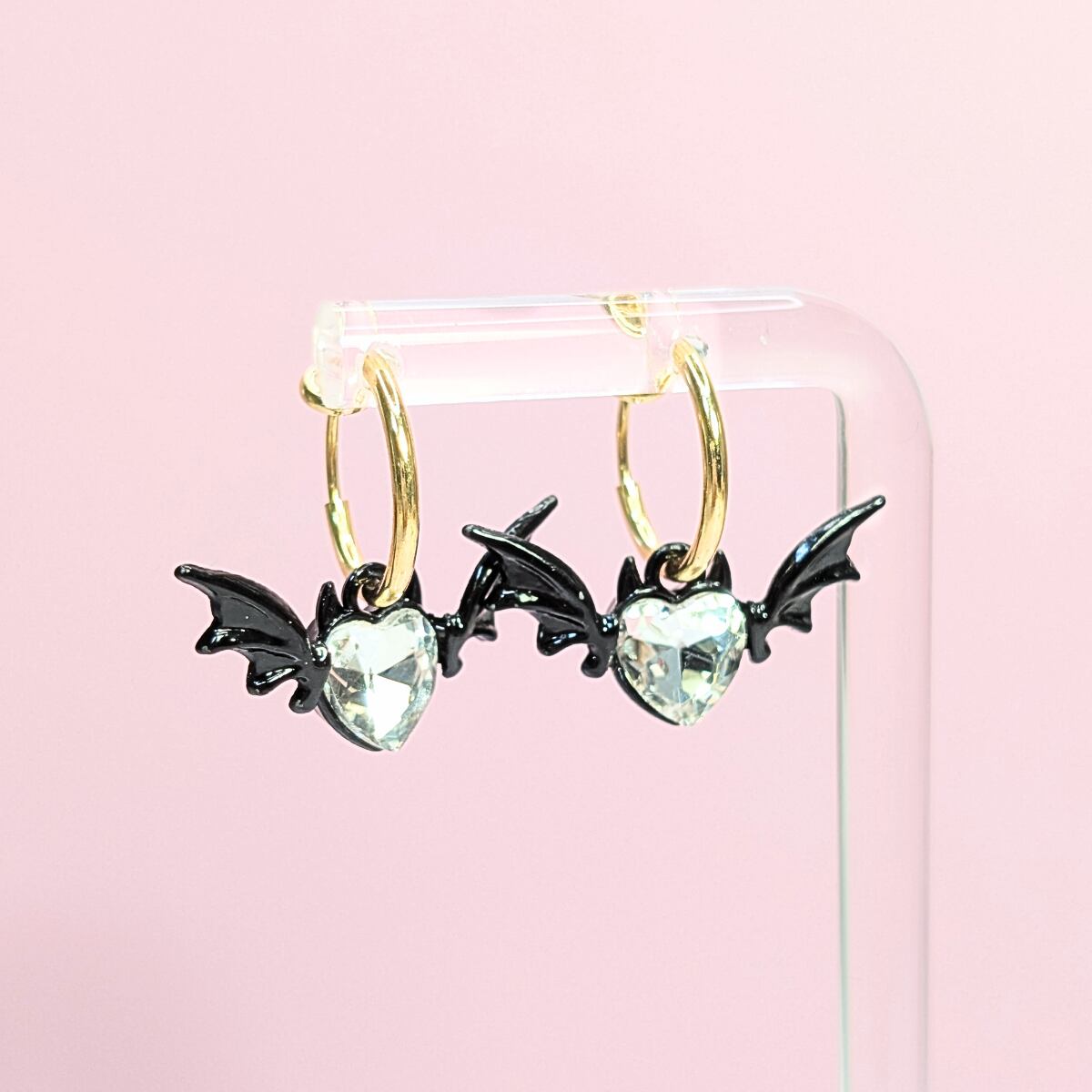 スワロフスキー輝くハートコウモリのフープイヤリング クリア